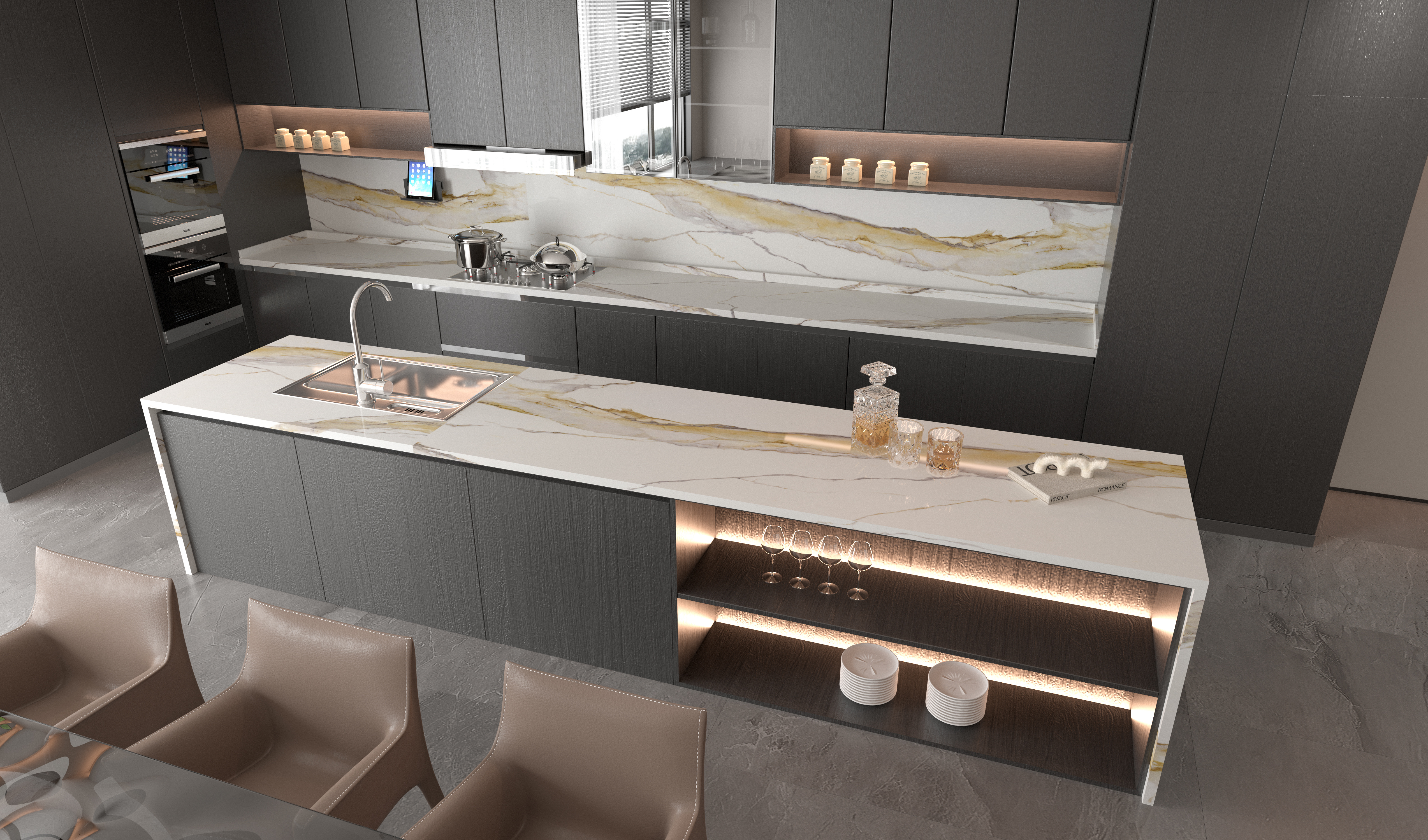 Impression quartz slabs options offer luxurious and grand design choices for creating elegant looking spaces. Create a deluxe yet comfortable environment, without compromising on durability.