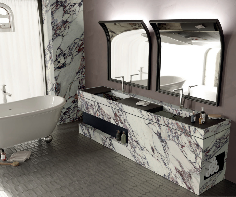 IKONYX’s Arabescato Viola Porcelain Slab: A Portrait of Dramatic Elegance