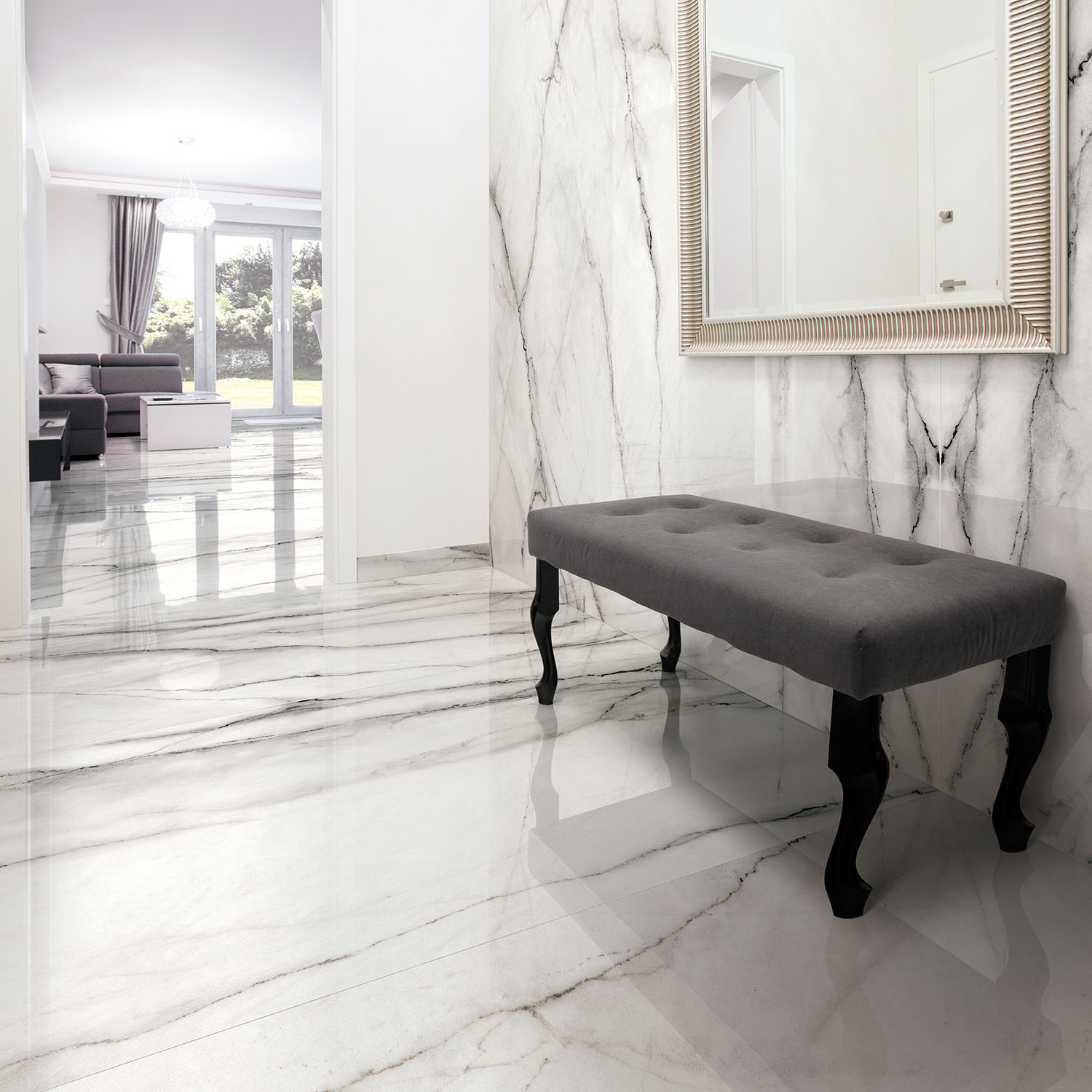From hallways with heavy foot traffic, to bathroom vanities and kitchen countertops IKONYX Porcelain is resilient and versatile. Our Porcelain is tough against food and liquid spills, as well as external wear and tear.