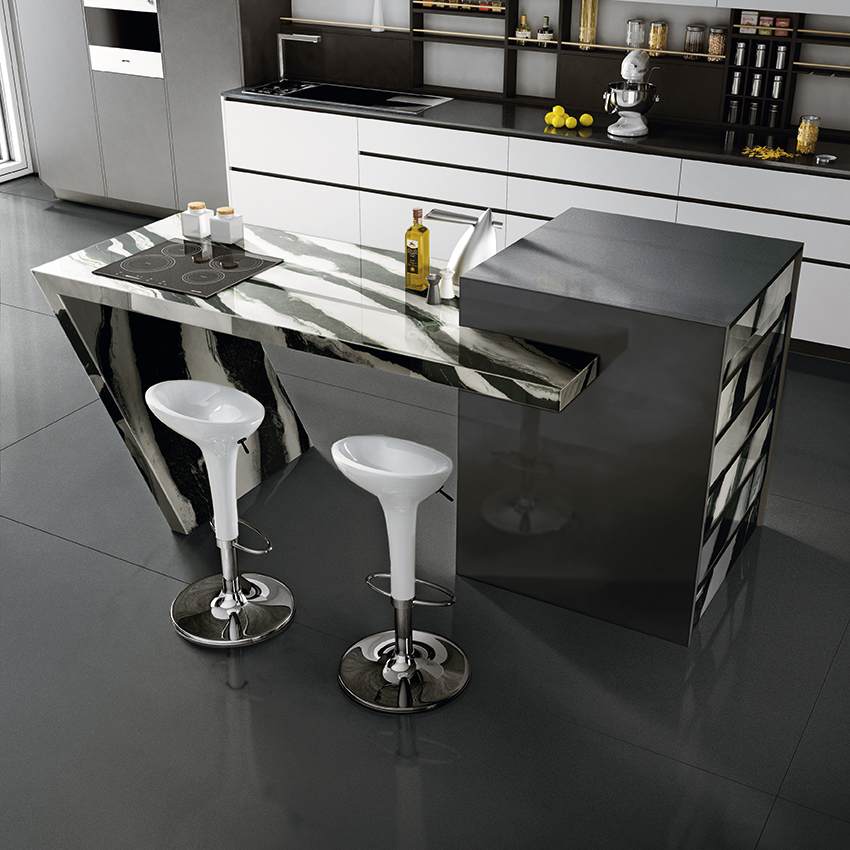 Durability and Quality: In line with IKONYX’s commitment to quality, the Panda Select slab is crafted with precision and advanced technology, ensuring both visual appeal and durability. It is designed to withstand daily use, preserving its sleek finish and structural integrity over time.
