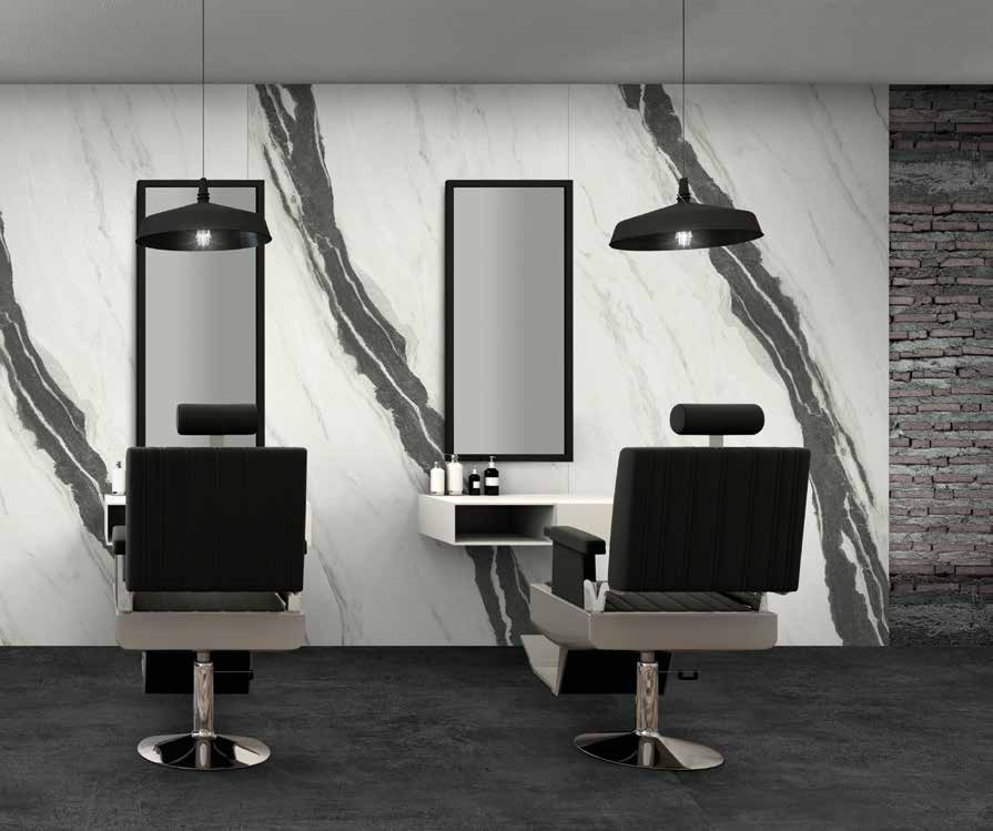 From hallways with heavy foot traffic, to bathroom vanities and kitchen countertops IKONYX Porcelain is resilient and versatile. Our Porcelain is tough against food and liquid spills, as well as external wear and tear.