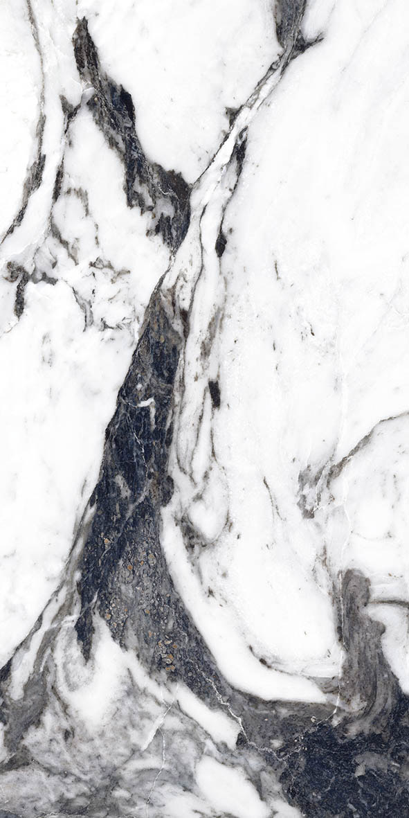 Design and Aesthetics: The Panda Bookmatch Porcelain Slab is a visual symphony inspired by the striking patterns of panda marble. Its surface features a mesmerizing display of contrasting black and white tones, meticulously bookmatched to create a seamless and dramatic effect. This slab showcases the innate beauty of nature’s artistry, making it a statement piece for interiors seeking an extraordinary touch. Whether used to craft luxurious kitchen countertops, breathtaking bathroom vanities, or as a work of art as flooring, the Panda Bookmatch slab elevates spaces with its awe-inspiring design.
