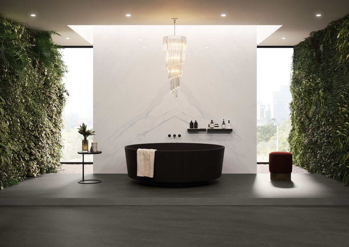 Porcelain slabs options offer luxurious and grand design choices for creating elegant looking spaces. Create a deluxe yet comfortable environment, without compromising on durability.