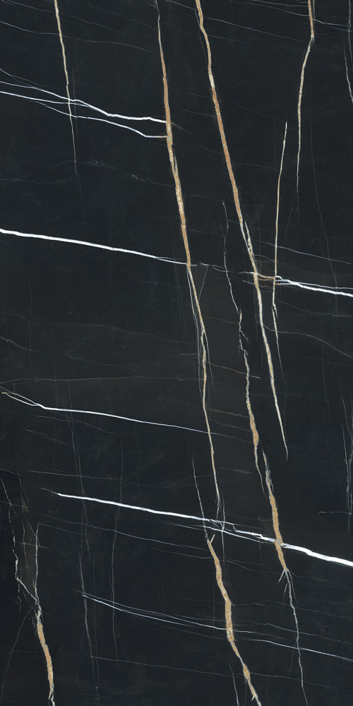 Design and Aesthetics: The Sahara Noir Porcelain Slab is inspired by the dramatic beauty of the Sahara Noir marble, known for its intense black background and captivating golden and white veining. This porcelain interpretation masterfully replicates the marble’s allure, providing a touch of dramatic elegance to any space. Ideal for creating impactful countertops, statement bathroom vanities, or as an alluring flooring option, it adds a sense of bold sophistication to any interior.