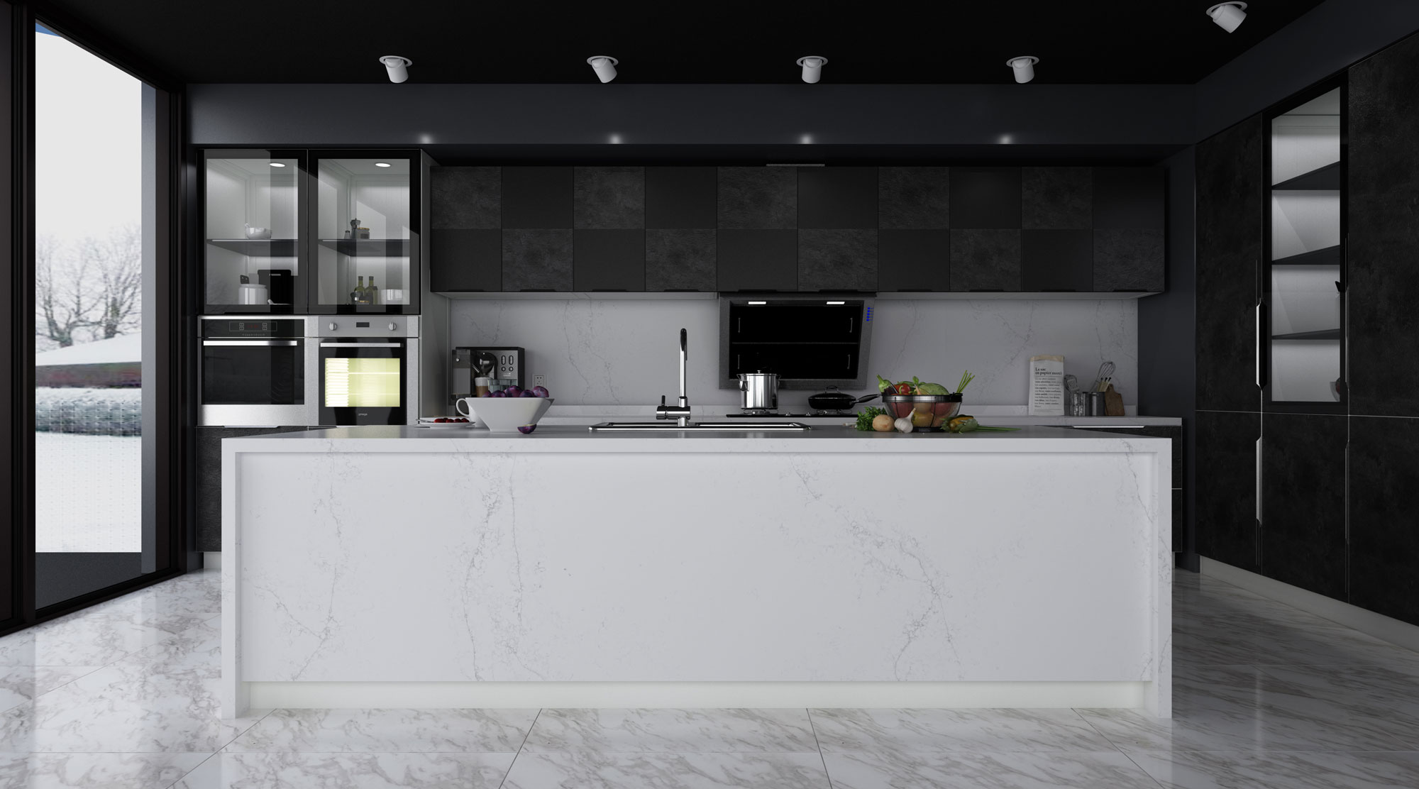 IKONYX Quartz is designed to stand up against the toughest wear, and is guaranteed to stay stable over time. UV resistant, non-absorbent, withstanding of sudden temperature changes, and fireproof – our quartz slab is ideal for indoor.