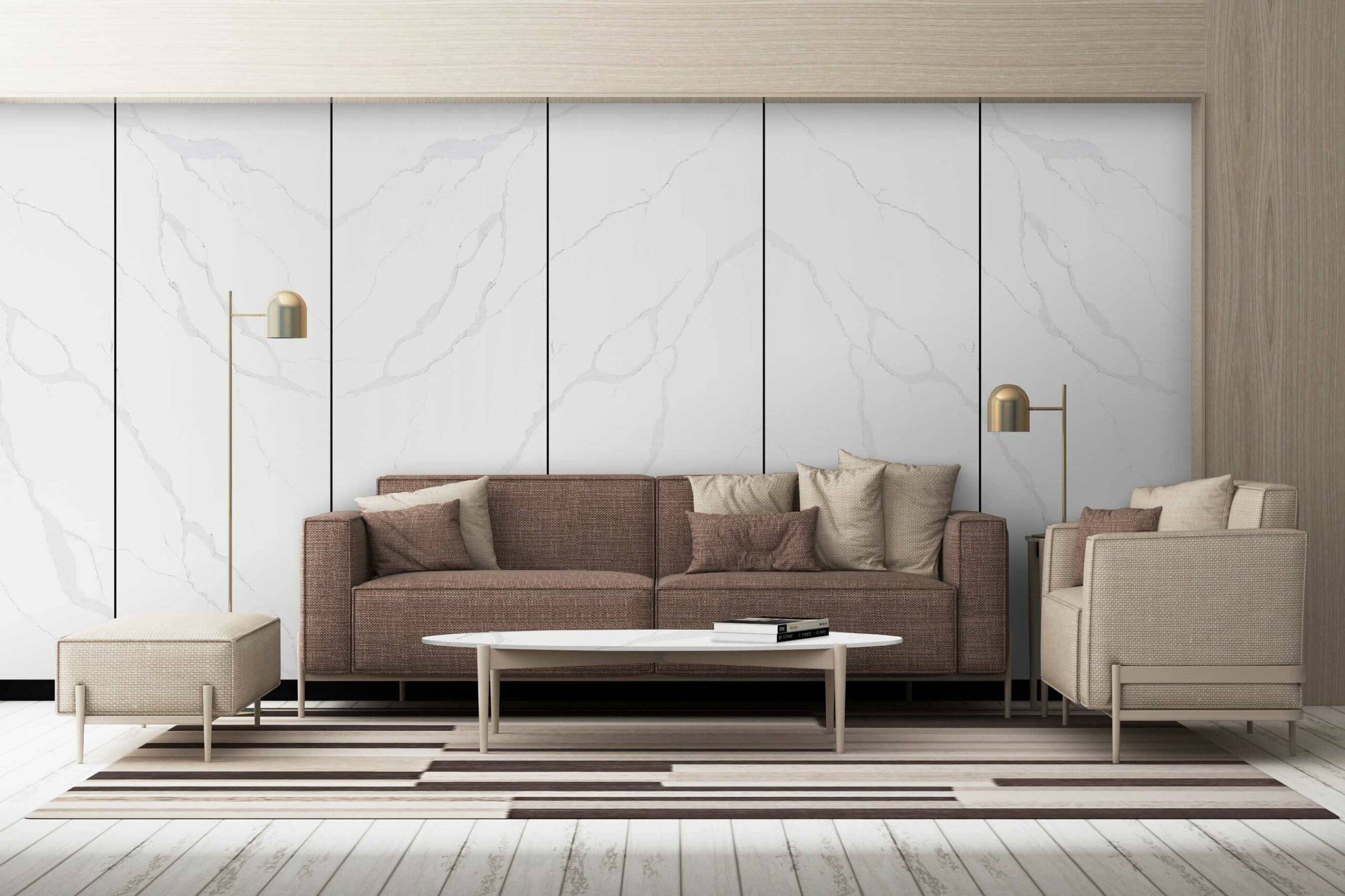 Quartz slabs options offer luxurious and grand design choices for creating elegant looking spaces. Create a deluxe yet comfortable environment, without compromising on durability.